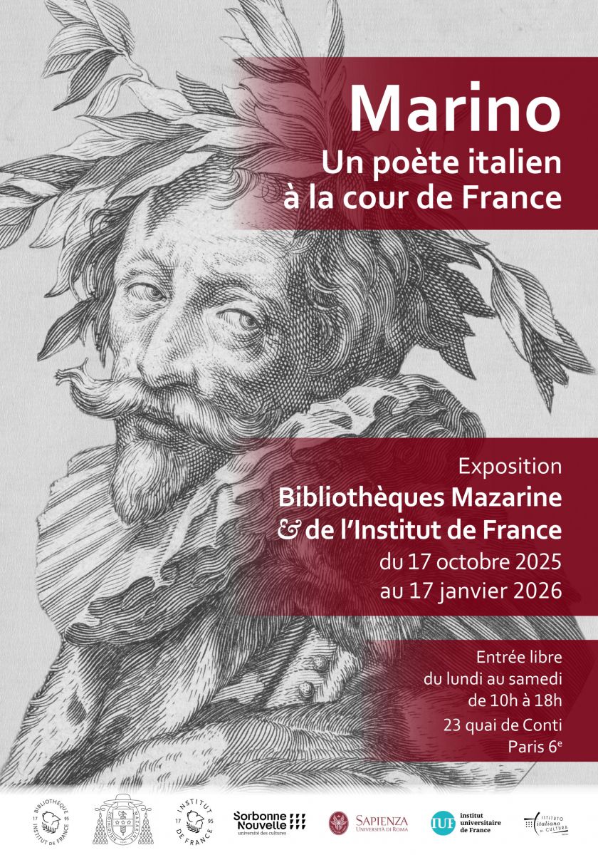 Exposition Un Italien à la cour de Marie de Médicis. Giambattista Marino et la France à la Bibliothèque Mazarine du 17 octobre 2025 au 17 janvier 2026.